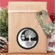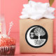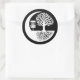 Disc golf themed stickers. Black and white disc golf basket and tree roots silhouette.