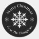 Sticker Rond Black And White Snowflake Merry Christmas Modern