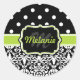 Sticker Rond Black Green Monogramme Damask Pois Motif