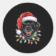 Sticker Rond Black Lab Labrador Christmas Tree Light Pyjama Chi