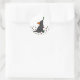 Sticker rond classique de la fête d'anniversaire Confetti du Labrador noir. Un labrador noir mignon célèbre son anniversaire avec un casquette d'anniversaire et un sifflet! Caricature unique et drôle Labrador Retriever créée par Naomi Ochiai du Japon.