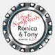 Si vous êtes Doing It In Vegas ou que vous avez un mariage thématique ou une réception à Las Vegas, vous adorerez ces stickers de jetons de casino en noir et argent. Utilisez la section "Personnalisez-le" à votre droite pour customiser cet autocollant avec vos propres préférences de texte et de police. Cet autocollant est disponible en 4 couleurs : rouge/noir, noir/or, noir/argent et turquoise/brun. Contactez-moi si vous désirez une couleur personnalisée. Des ornements assortis, des magnets ronds, sauf les cartes de date et les invitations de mariage sont également disponibles dans ce design. Si vous avez besoin d'aide, avez des questions ou souhaitez que d'autres produits coordonnés correspondent à ces autocollants, veuillez me contacter à l'adresse info@cheryldanielsart.com. "Las Vegas Newlyweds" par Cheryl Daniels © 2010.