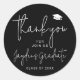 Script moderne simple et amusant sur arrière - plan noir, grand autocollant de remerciement personnalisé pour la fête de remise de diplômes faveur ou cadeau.