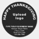 L'autocollant Thanksgiving pour saluer vos clients. Sticker que vous pouvez utiliser comme matériel de marketing pour annoncer votre entreprise et promouvoir votre marque. Sticker avec salutation d'action de grâces et avec votre nom d'entreprise pour construire la sensibilisation de marque. Vous pouvez également l'utiliser comme étiquette de produit cette saison d'action de grâce. La forme de l'autocollant est ronde. Le design est une simple police blanche sur arrière - plan noir. Pour customiser cet autocollant, téléchargez votre logo d'entreprise, tapez votre nom d'entreprise ou d'entreprise, votre adresse et votre numéro de téléphone, puis vérifiez l'apparence. Si l'apparence vous plaît, vous pouvez passer votre commande maintenant. Si vous avez besoin de redimensionner et déplacer le logo et les textes pour tenir sur cet autocollant ou sur d'autres formes et tailles que vous choisirez, s'il vous plaît changer dans l'outil de conception. Vous pouvez également effectuer d'autres modifications selon vos préférences dans l'outil de conception, comme changer la couleur de l'autocollant, la couleur de police et le style de police. BON THANKSGIVING !