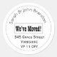 Sticker Rond Blanc noir moderne Nous avons bougé Faire-part