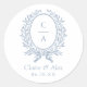 Sticker Rond Blason de mariage bleu à feuille d'olive élégant