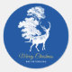 Sticker Rond Bleu classique Cerf de Toile en Forêt