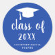 Un autocollant minimaliste de graduation avec un design simple et classique avec un grand casquette et "classe de l'année" dans une épaisse écriture manuscrite avec le nom du diplômé en blanc sur un arrière - plan bleu. La couleur arrière - plan peut être changée en n'importe quelle couleur. Un style traditionnel avec une touche moderne, parfait pour une jeune diplômée. Ces autocollants sont excellents comme enveloppes scellées ou pour les faveurs de la fête.