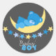 Sticker Rond Bleu Dormir Garçon Teddy Ours Sur Baby shower Lune