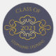 Sticker Rond Bleu élégant | Gold Flourish Class of 2023 Nom