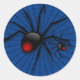 Bleu Halloween Evil Black Widow Araignée effrayante Web Classic Round Sticker. Elégant, beau, design moderne. Avec le menu Zazzle facile à utiliser; Mes designs peuvent inspirer et encourager les clients à créer leurs propres produits uniques. Éléments correspondants disponibles. Joyeux Halloween.