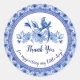 Autocollants de remerciement pour une petite entreprise. Un motif de bordure festonnée traditionnel chinois entoure l'œuvre d'art décorative florale de chintz chinoiserie d'un oiseau stylisé sur une branche sur des fleurs bleues et blanches. Tout a été inspiré par les poteries asiatiques anciennes, les textiles et les fresques en carreaux de céramique et peints à la main à l'acrylique aquarelle sur toile par Audrey Jeanne Roberts.