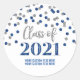 Classe de nom personnalisé de 2021 autocollants de graduation avec motif de confetti argent et bleu.