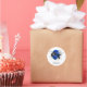 Sticker Rond Bleu Royal, Noir et Fleurs Argentées