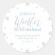 Cet autocollant mignon 1er anniversaire présente des flocons de neige bleu et argent clair et une typographie stylisée "Winter ONEderland". Idéal pour une fête d'hiver à thème de pays des merveilles. Les invitations et les fournitures de fête correspondants sont disponibles dans ma boutique BaraBomDesign.