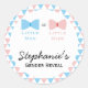 Le motif de triangle bleu et rose révèle avec l'autocollant de cravate arc. Le design est composé d'un motif triangles bleu et rose et d'un cercle blanc au milieu avec une cravate arc et votre texte personnalisé.