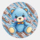 Sticker Rond Blue and Brown Crocheted Teddy Bear