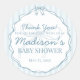 Sticker Rond Blue Coquette Bow Pastel Baby shower rayé Favorise