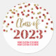 Classe de nom personnalisé de 2023 autocollants de graduation avec motif de confettis rouge et or.