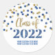 Classe de nom personnalisé de 2022 autocollants de graduation avec motif de confetti en or et bleu.