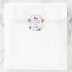 Blue How Time Flies Plane 1er Anniversaire Classic Round Sticker Bleu, rouge avec une touche de jaune comment le temps vole l'autocollant de premier anniversaire pour un bébé avec des avions, des montgolfières et des nuages.
