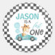 Blue Racing Car Giraffe 1er Anniversaire Classic Round Sticker Sweet racing car thème premier anniversaire autocollant pour un petit garçon avec une aquarelle bleue voiture de course, girafe mignonne, ballons bleus et un peu de texte. Idéal pour une fête de premier anniversaire sur le thème de la voiture de course.