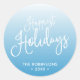 Happiest Holidays Vacances autocollant rond avec les mots "Happiest Holidays" dans un script de brosse amusant contre un arrière - plan dégradé bleu. Fabrique un autocollant pour Noël / Vacances d'hiver. Consultez d'autres articles de vacances ici https://www.zazzle.com/collections/holiday_christmas_new_year_cards-119015800351034065?rf=238364477188679314 Personnalisez-le en remplaçant le texte de l'espace réservé. Pour plus d'options, cliquez sur le bouton "Personnaliser". *Veuillez noter que le filigrane Zazzle qui apparaît dans l'aperçu du zoom n'apparaîtra PAS sur le produit imprimé final. © Bois de rose et agrumes