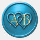 Sticker Rond Blue Two Hearts Intertwined Monogram Wedding