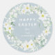Sticker Rond Blue + White Floral Wreath Message de Pâques