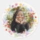 Boho Watercolor Floral Graduation Photo Sticker Classic Round. Customisez avec la photo de votre diplômé pour les sceaux d'enveloppe, les faveurs de fête, et plus encore.