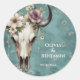Sticker Rond Boho Chic Aquarelle Floral Vache Mariage crâne