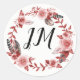 Sticker Rond Boho Feather Bourgogne Rose Wreath Monogramme Mari
