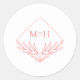 Sticker Rond Boho Leaf Monogram Coral Rose Mariage