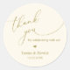 Cadeaux de Merci minimaliste Mariage moderne Sticker classique en écriture romantique, petit coeur mignon, avec signature mariée et mariée et date mariage, thème doré jaune.