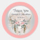 Un crâne de cerf aquarelle aux bois majestueux ornés de roses roses roses vertes ; des fleurs d'anémones ; des plumes et des cristaux reposent sur une abstraite tache beige pâle entourée d'un orbe gris pâle brillant bordée de rose sombre. Personnalisez le libellé; ajoutez une couleur arrière - plan et utilisez-la pour remercier la famille, les amis et les invités d'avoir assisté à votre mariage, événement ou fonction.
