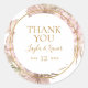 Ce boho tropical botanique | merci mariage faveur classique rond autocollant est parfait pour votre élégant mariage d'or rose, vert, pêche, floral, vert. Le design présente un cadre or ou un bouquet avec de l'herbe rose pâle moderne, de la sauge simple, de l'ivoire, une feuille de palmier à champagne et une végétation de plage classique. Les fleurs peuvent inclure rose rose et orchidée. Le design est idéal pour un classicisme vintage en terre cuite, beige, rouille, hiver, printemps, mariage de automne. Veuillez trouver d'autres articles de papeterie mariage correspondants ou coordonnés dans le reste de la collection.