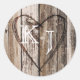 Sticker Rond Bois Coeur Etching Rustic Monogram Mariage Étiquet