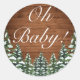autocollant baby shower "Oh bébé". Bois brun rustique, neige arrière - plan et forêt enneigée. Style rustique vintage et cosy. D'autres articles sont disponibles dans ce style dans notre magasin. Vous pouvez modifier la conception plus loin, modifier les couleurs, les polices et ajouter du texte en cliquant sur le lien "customiser plus loin".
