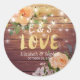 Sticker Rond Bois rustique Floral Chaîne Lumières Mariage Merci