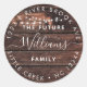 Customisez cet autocollant d'adresse de retour circulaire avec votre nom de famille et adresse future sur bois rustique et lampes à cordes dans la typographie moderne et élégante et la calligraphie de script. Parfait pour les enveloppes mariages ou autres occasions spéciales et élégantes, préférez les sacs cadeaux et autres cadeaux.