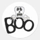 Sacs fourre-tout d'Halloween effrayants, T-shirts, tasses, magnets, boutons, et plus avec un crâne et des os de la main accrochés au texte qui dit "BOO" !