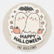 Autocollant adorable avec deux fantômes mignons avec des citrouilles, parfait pour décorations de fête ou emballage cadeau. (OEuvre générée par l'IA)