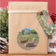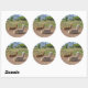 Sticker Rond Bon look Llamas (lama glama) sur Green Grass