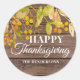 Ces autocollants Thanksgiving sont décorés de feuilles de chute d'aquarelle aux couleurs de l'automne sur un arrière - plan en bois de grange et dire Bon thanksgiving dans la typographie stylisée. Customisez-les avec votre nom. Aquarelle originale © Michele Davies.