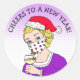 Sticker Rond Bonjour à une nouvelle année, Retro Lady en Facema
