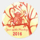 Un autocollant lumineux pour le Nouvel An chinois ~ Année du Singe 2016 ~ décoré d'un singe lunatique dans un arbre peint en rouge vif avec un arrière - plan d'aquarelle jaune doré.