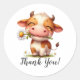 Sticker Rond Bonne vache Brown avec Merci à fleurs