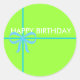 Un autocollant vert citron brillant attaché avec un arc d'aqua parfait! Cet autocollant semble fab sur du papier mousseux rose chaud, aqua et même orange! ! Une façon simple d'habiller un paquet.