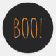 Sticker Rond Boo noir orange éffrayant typographie fun Hallowee