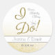 Il est temps d’ouvrir la bulle avec cet autocollant de fiançailles blingy ! Les mots "I Do!" sont avant et centre et remplis d'une texture de parties scintillant d'or. Un diamant plane au-dessus du "o" pour suggérer l'anneau fiançailles. Vers le bas, une texture arrière - plan dorée de cercles brillants suggère soit des lumières, soit des bulles de champagne. Choisissez entre le rose, le bleu ou l'or. Commencez votre fiançailles avec un autocollant qui crie l'occasion depuis le toit!